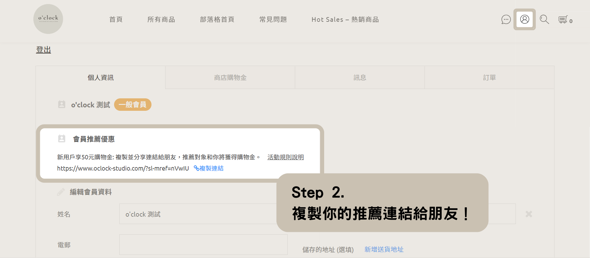 分享給沒有在官網下過單的朋友,請他用「你的專屬連結」下單,你跟他都可以享優惠!