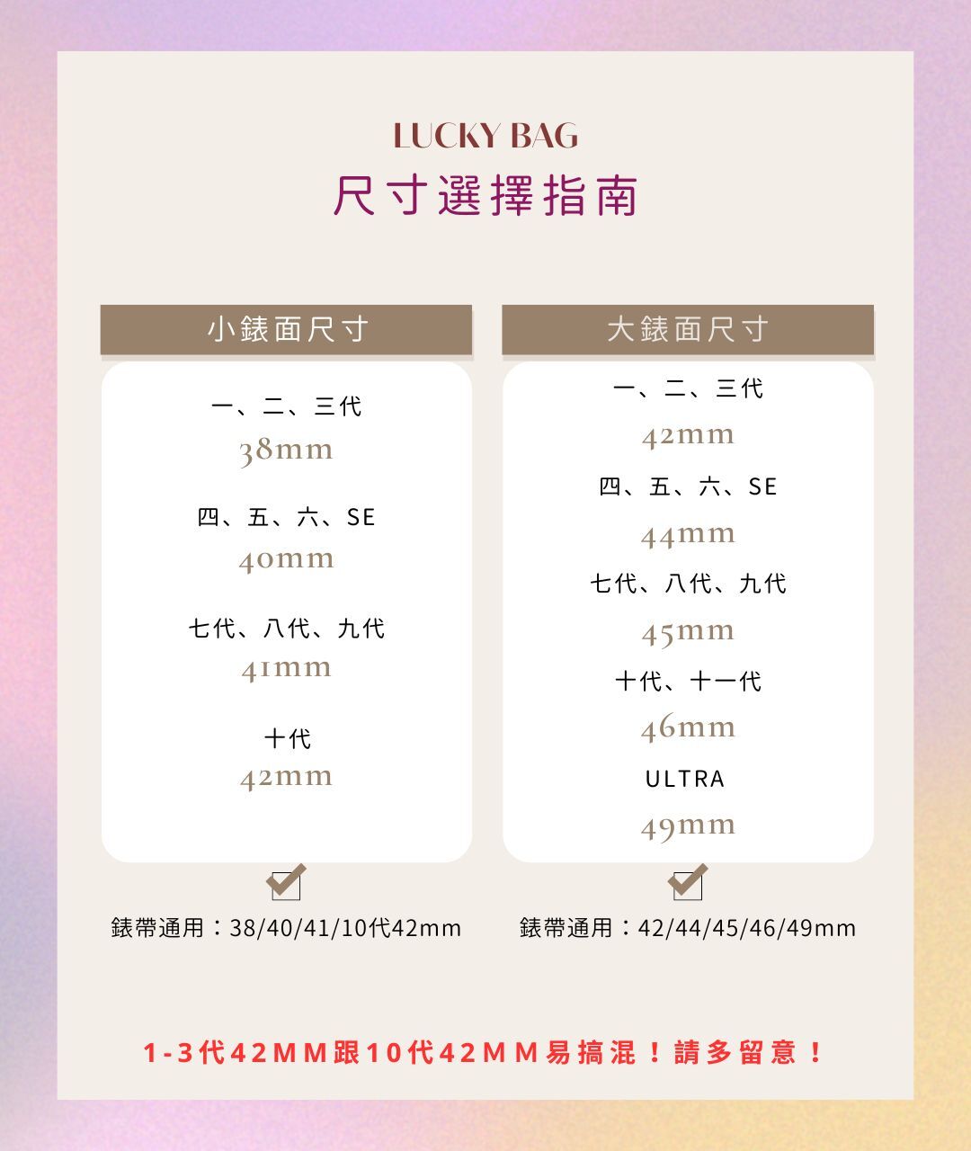 福袋內含:質感錶帶2入(金屬/皮革/矽膠/陶瓷/尼龍)、品牌羊絨錶帶收納包1入、品牌刺繡折疊紅包袋2入組