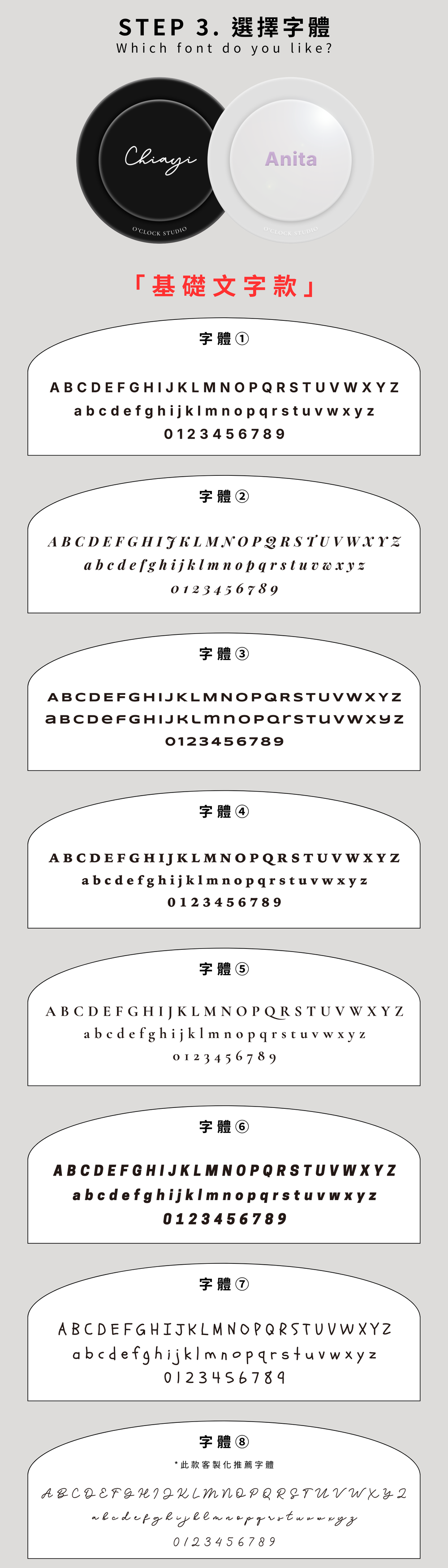 敬請於下單前確認所需字體與顏色,以避免多次往返溝通造成製作延遲🙏🏻