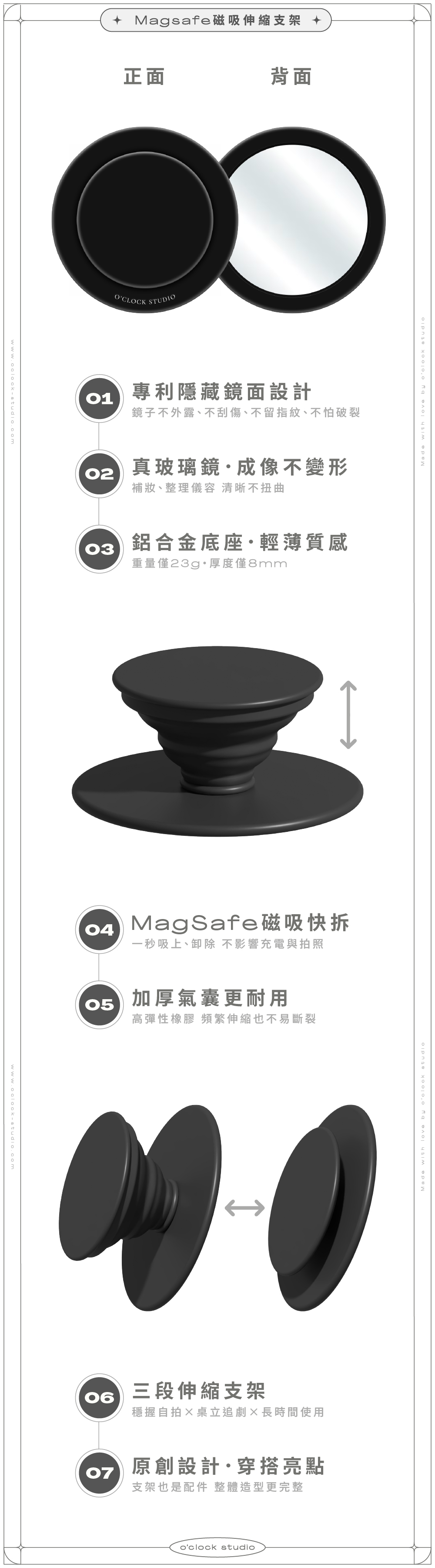 【客製化】手寫連線文字款-隱藏式鏡面伸縮磁吸手機支架 (支援Magsafe)