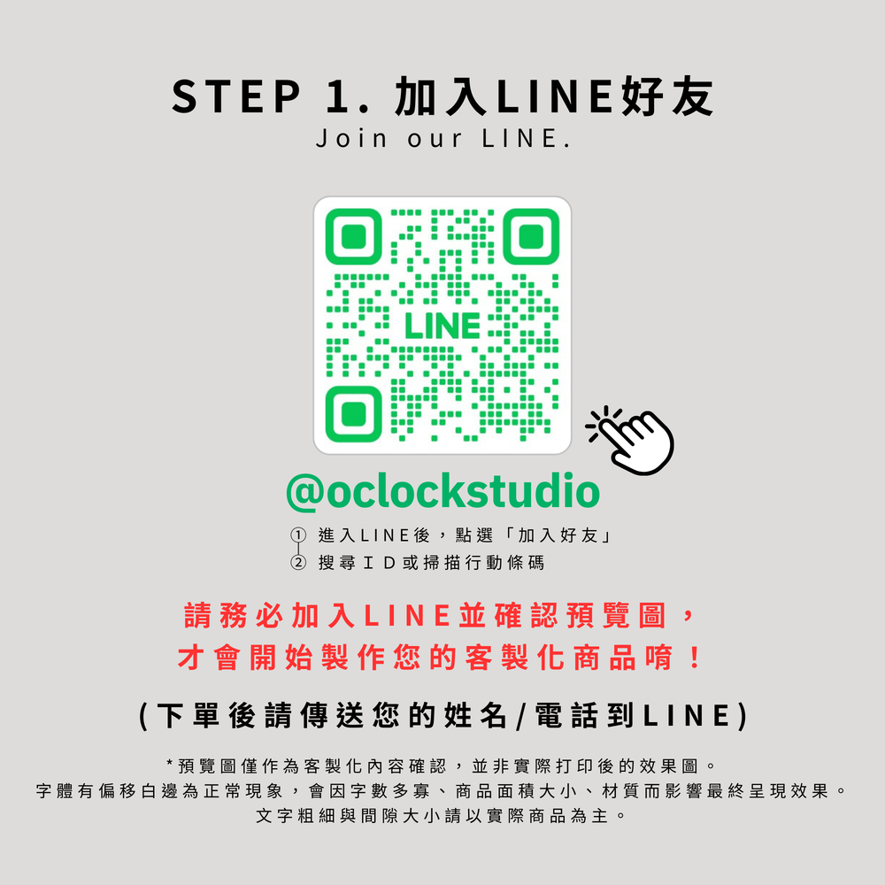 敬請於下單前確認所需字體與顏色,以避免多次往返溝通造成製作延遲🙏🏻