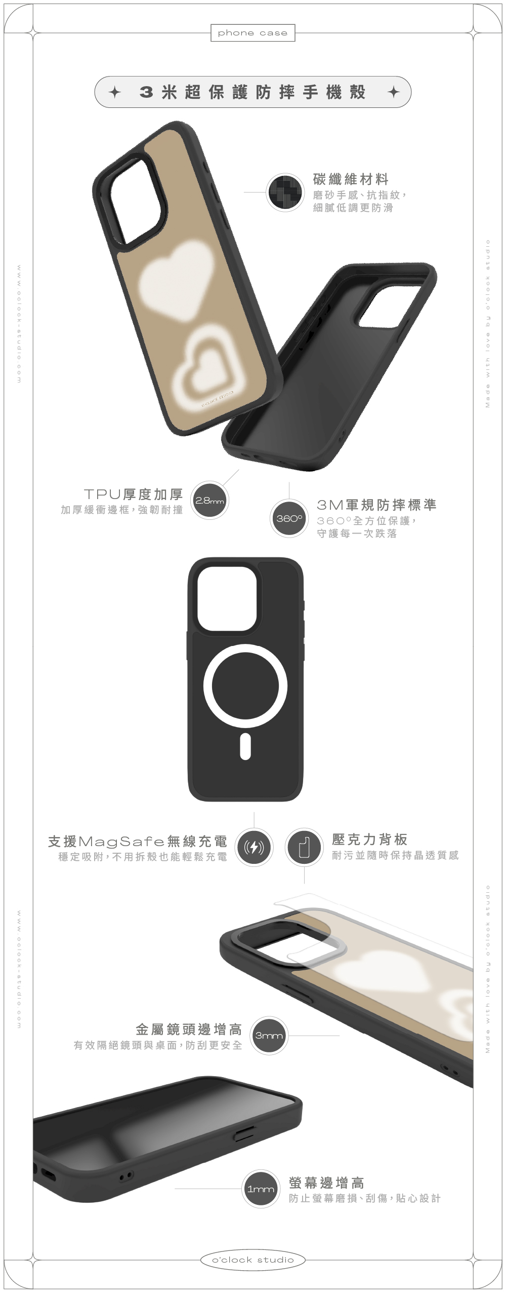 材質:TPU / 碳纖維 / 金屬 / 壓克力背板