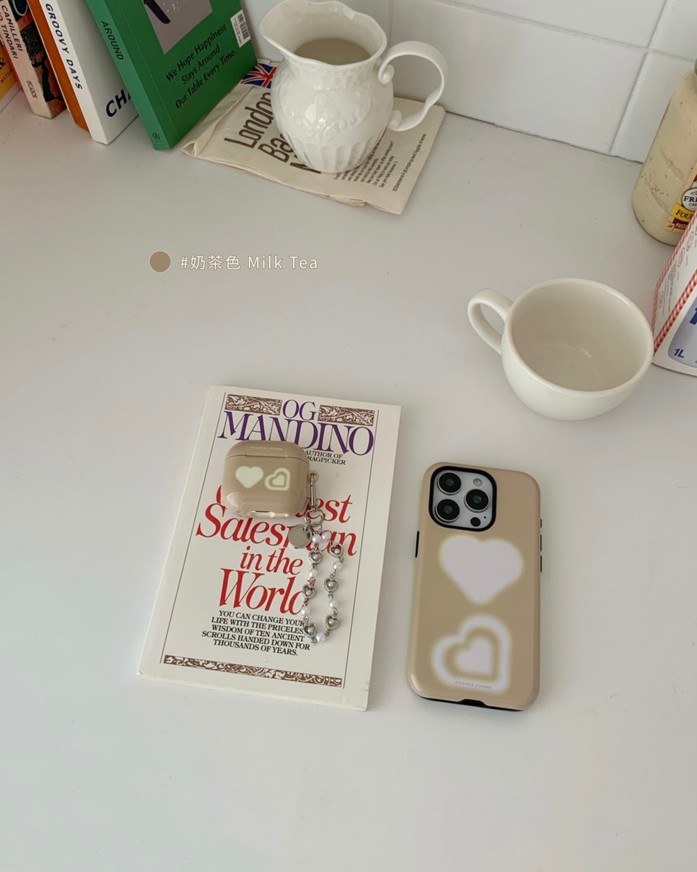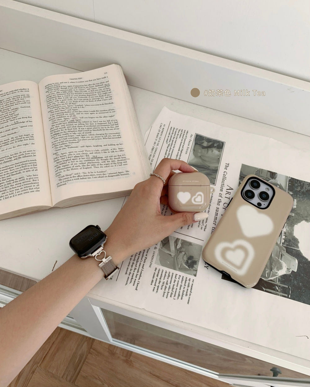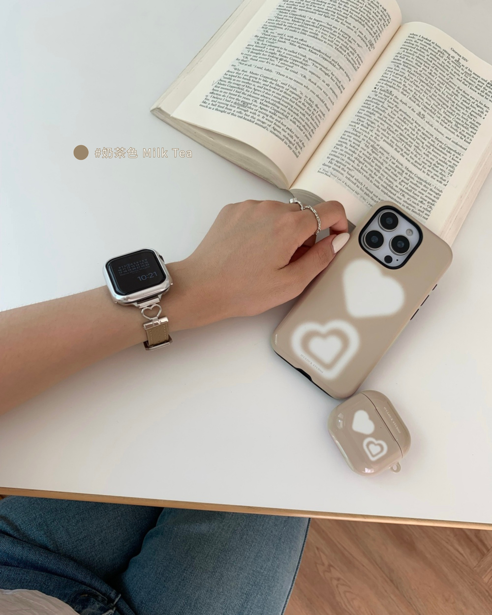 手機殼+耳機殼+真皮錶帶+愛心掛飾 🤍🤎🩷