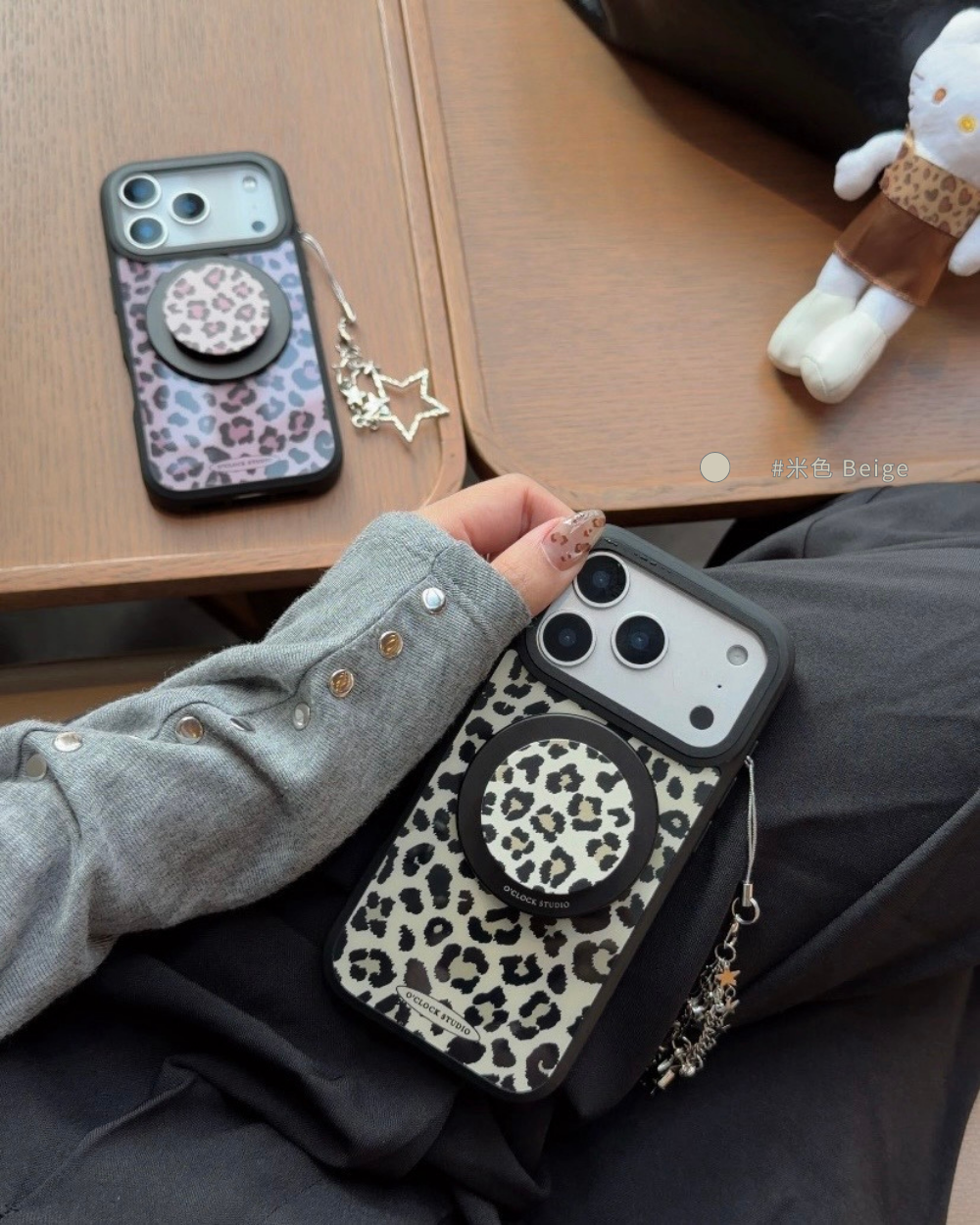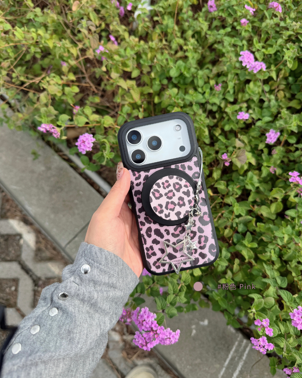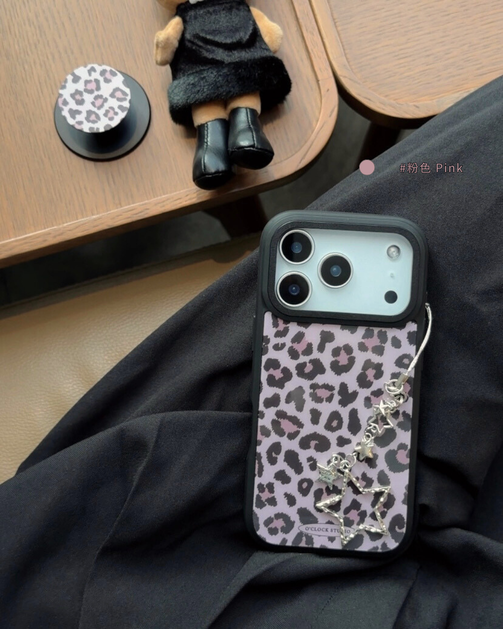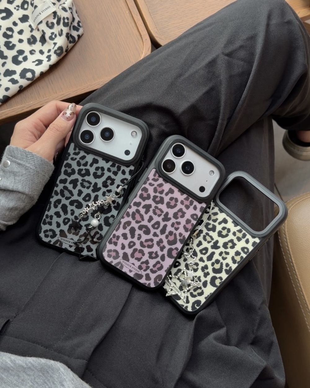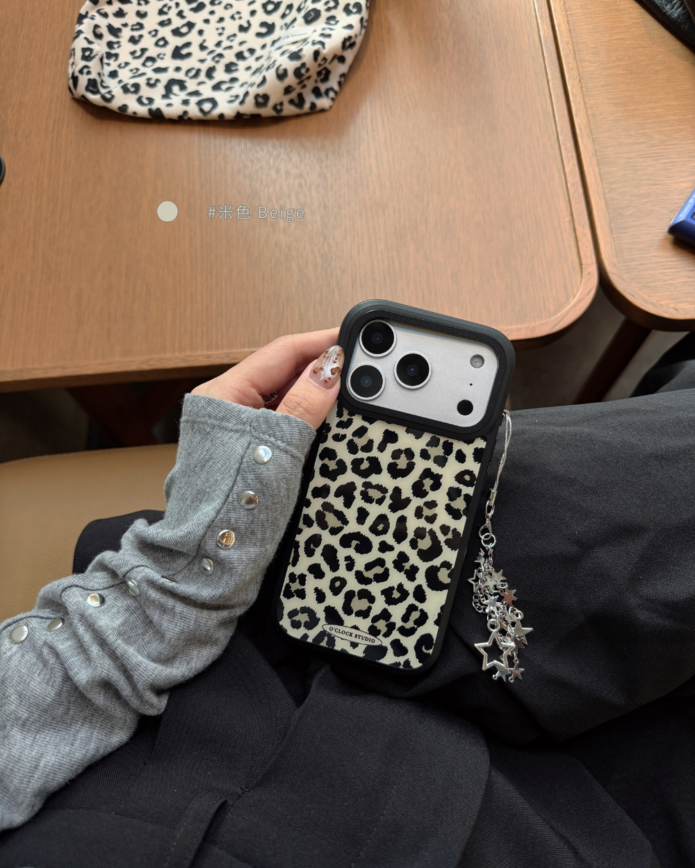溫柔𝟯色手機殼搭配黑色描邊豹紋,帶點野性的反差魅力