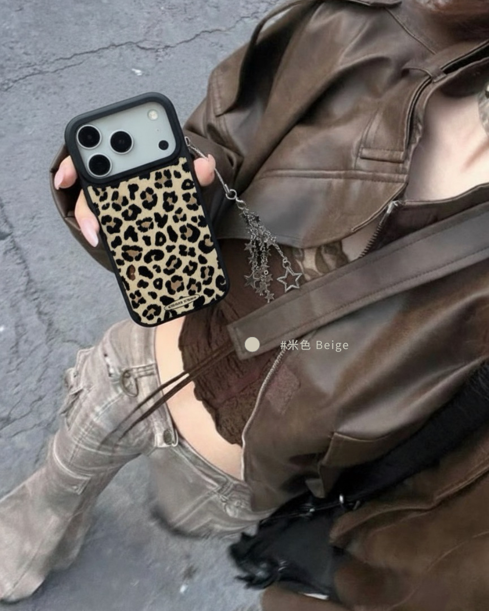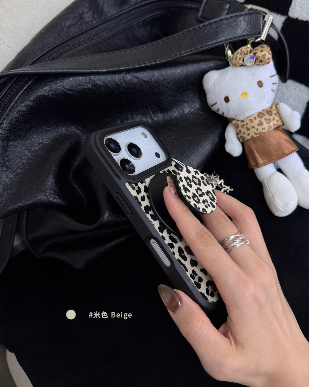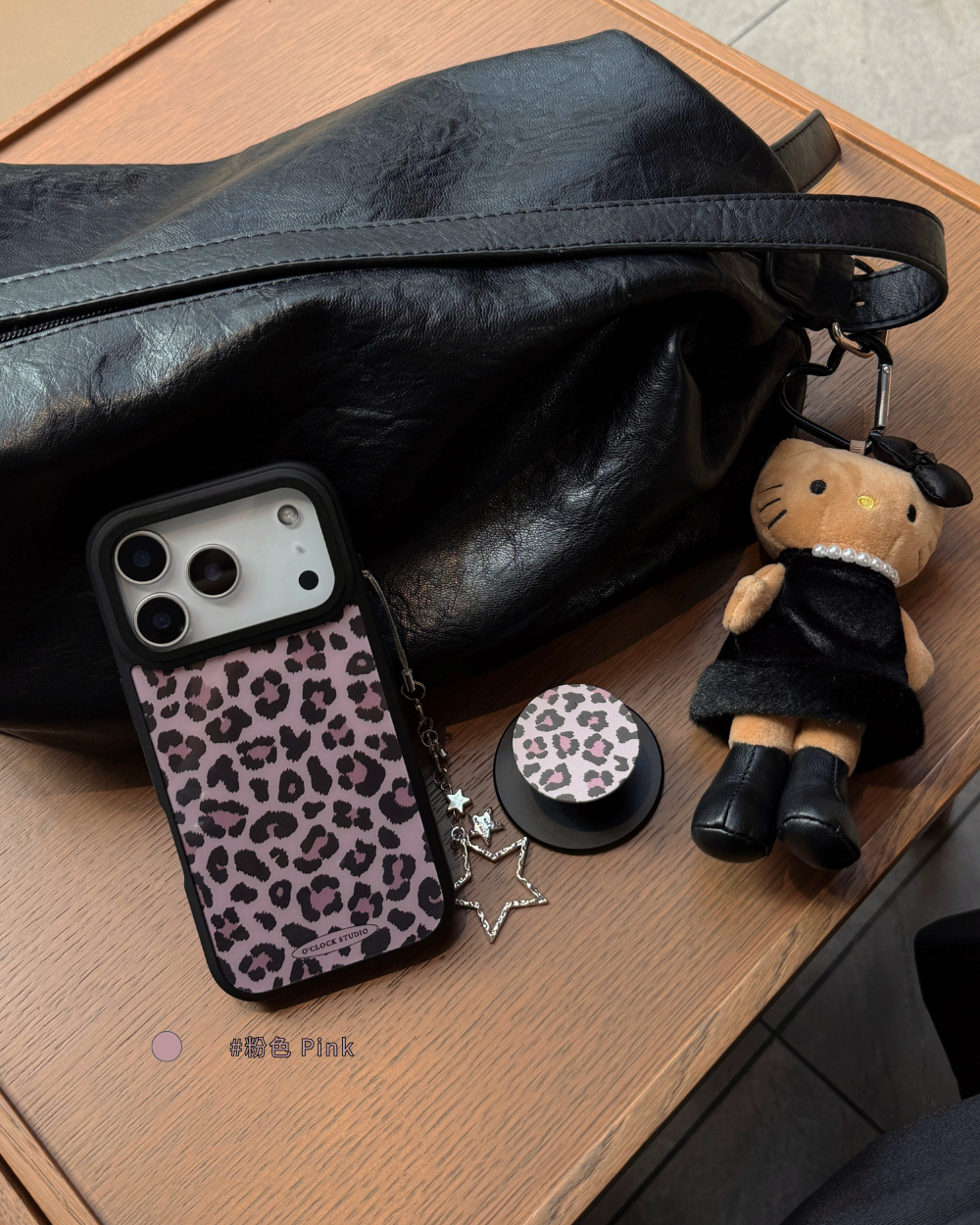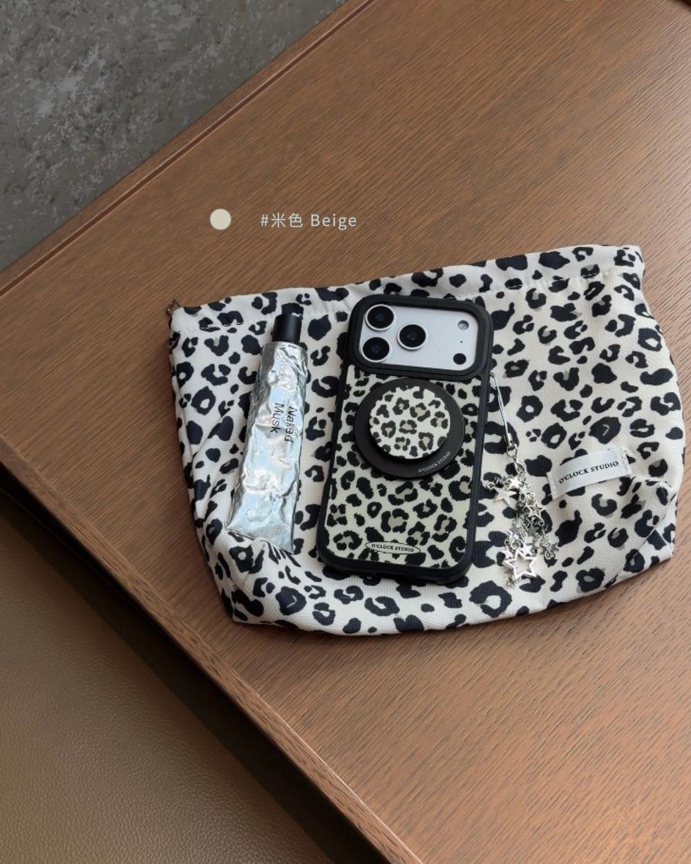 溫柔𝟯色手機殼搭配黑色描邊豹紋,帶點野性的反差魅力