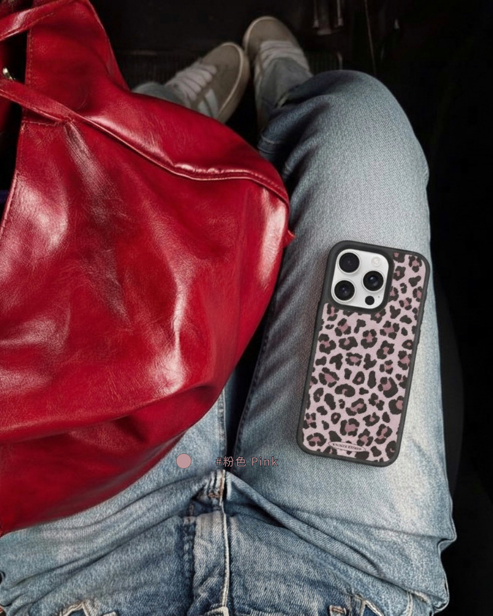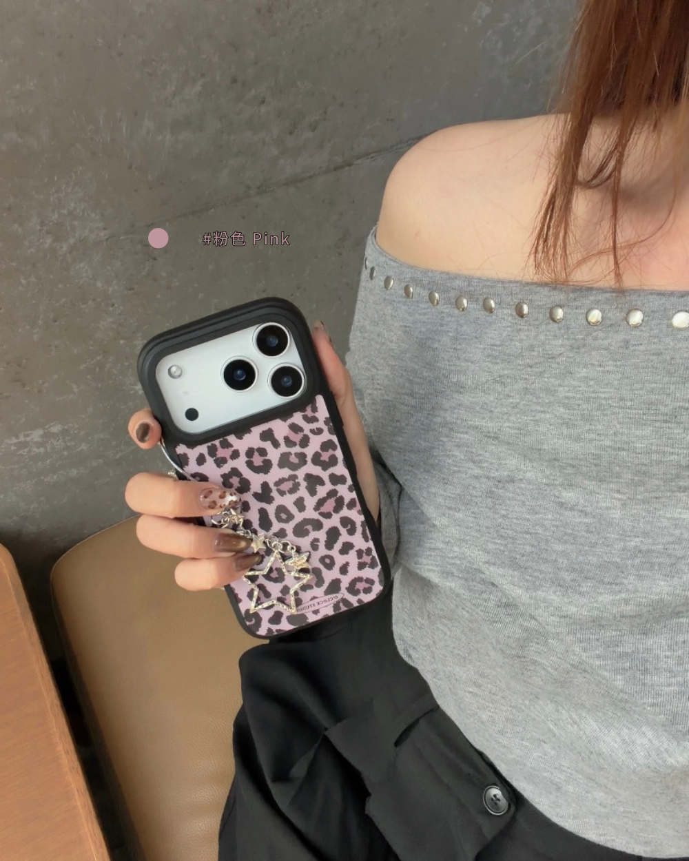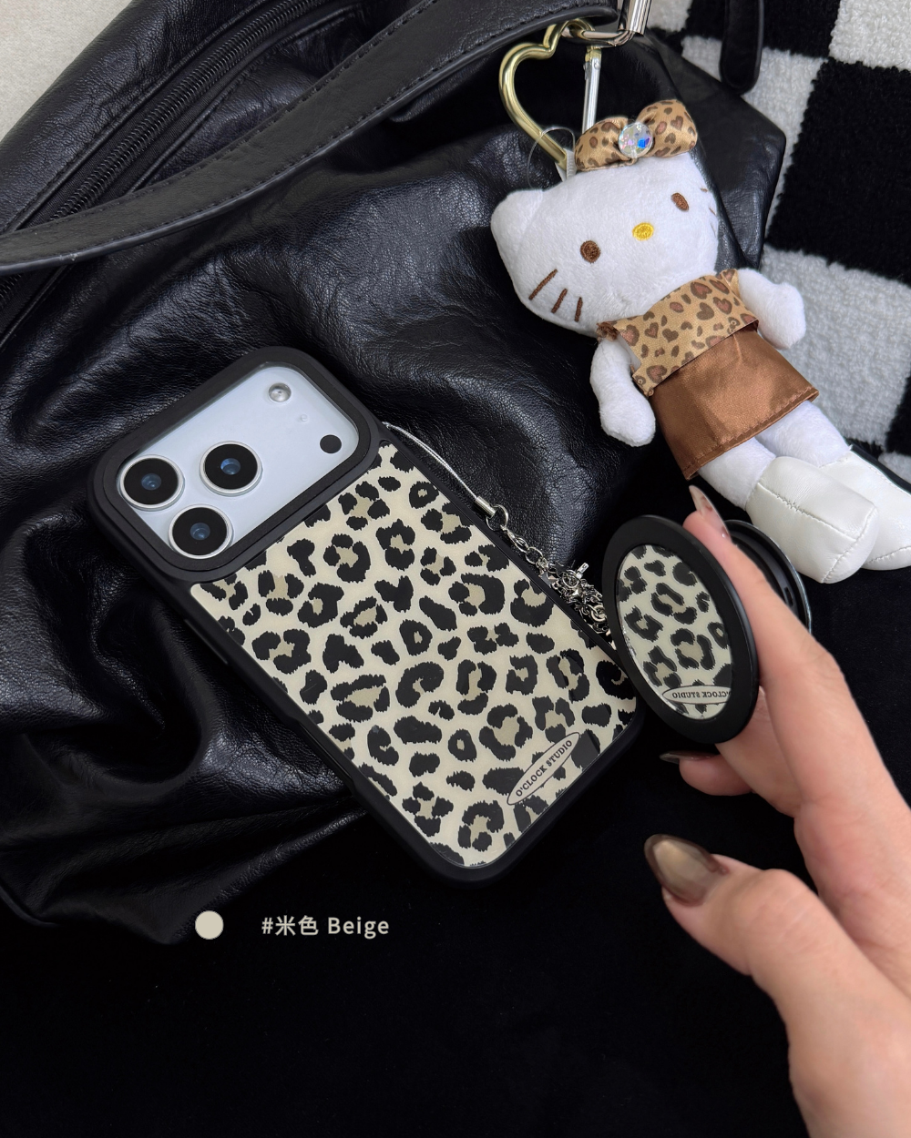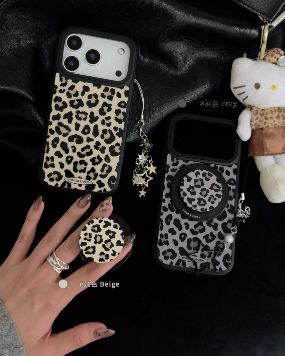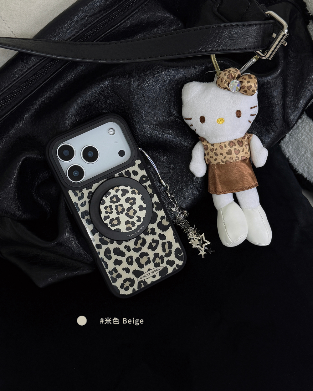 溫柔𝟯色手機殼搭配黑色描邊豹紋,帶點野性的反差魅力