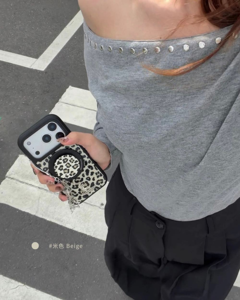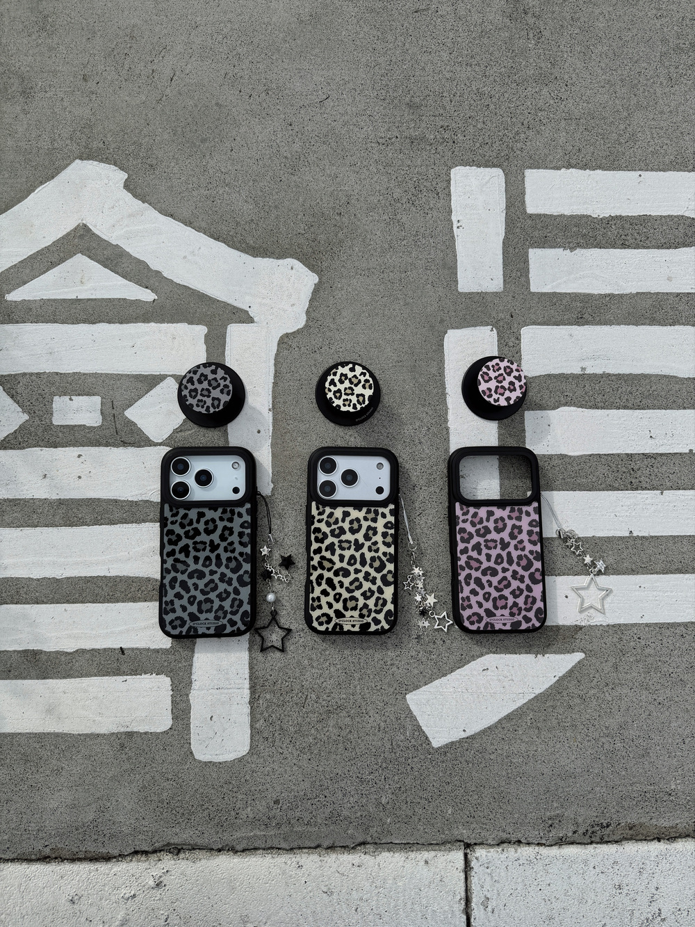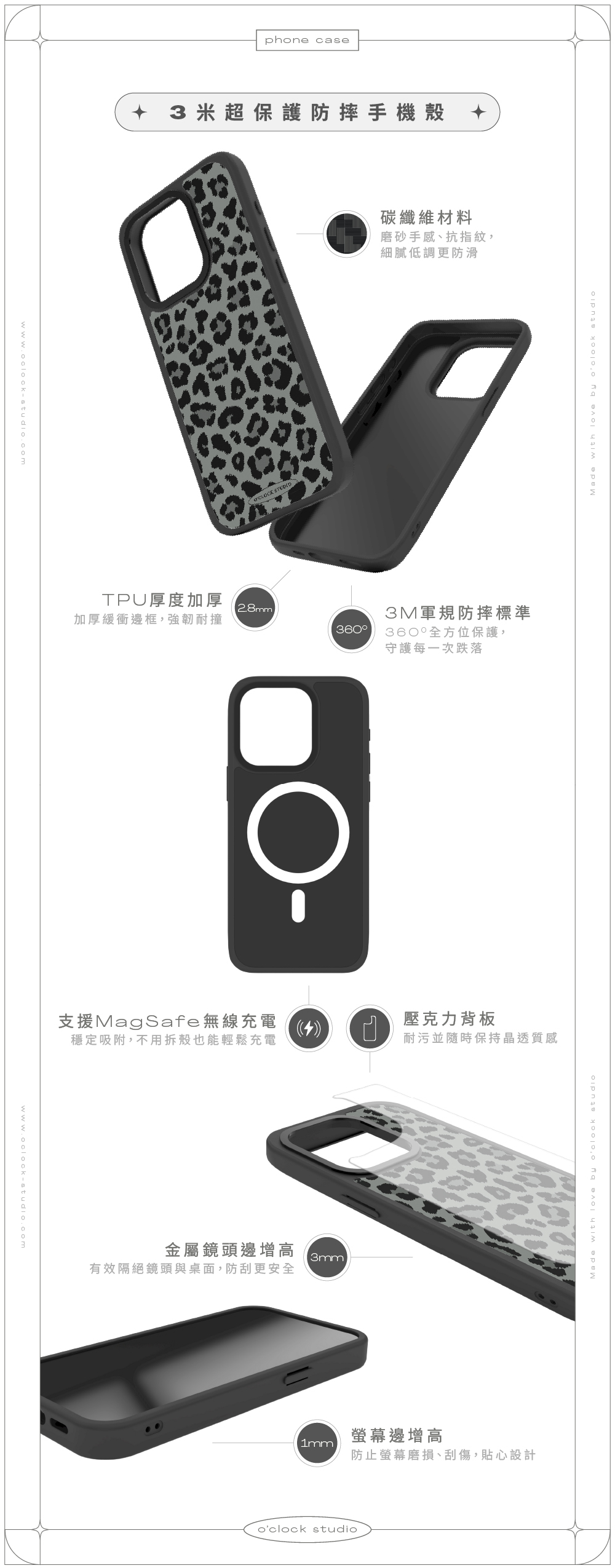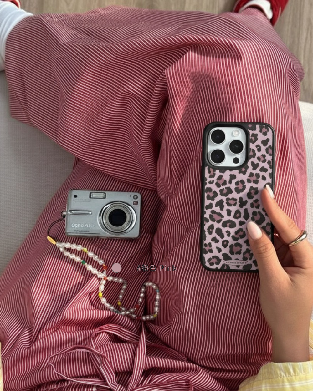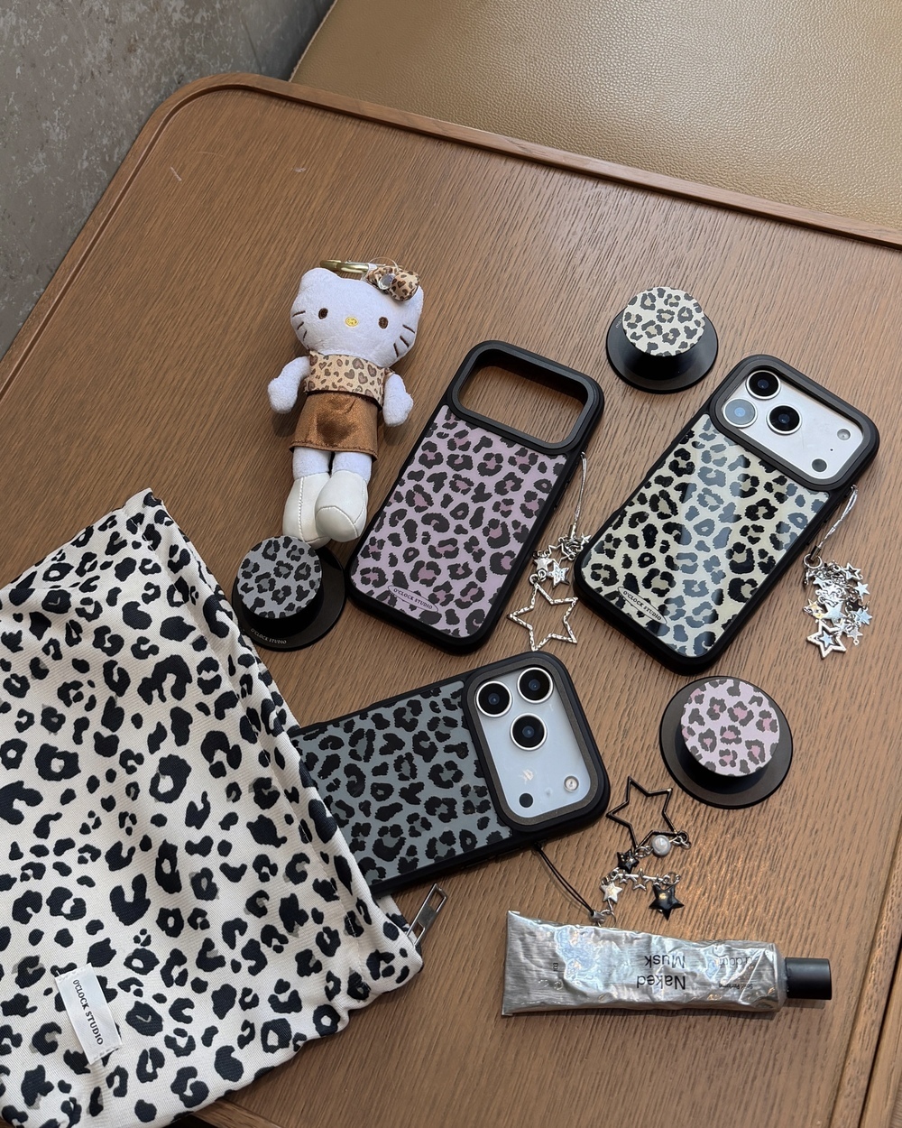 溫柔𝟯色手機殼搭配黑色描邊豹紋,帶點野性的反差魅力