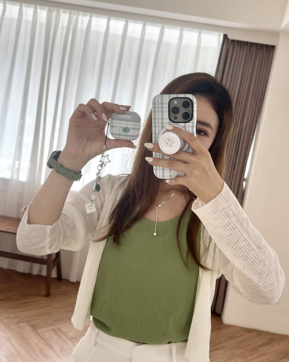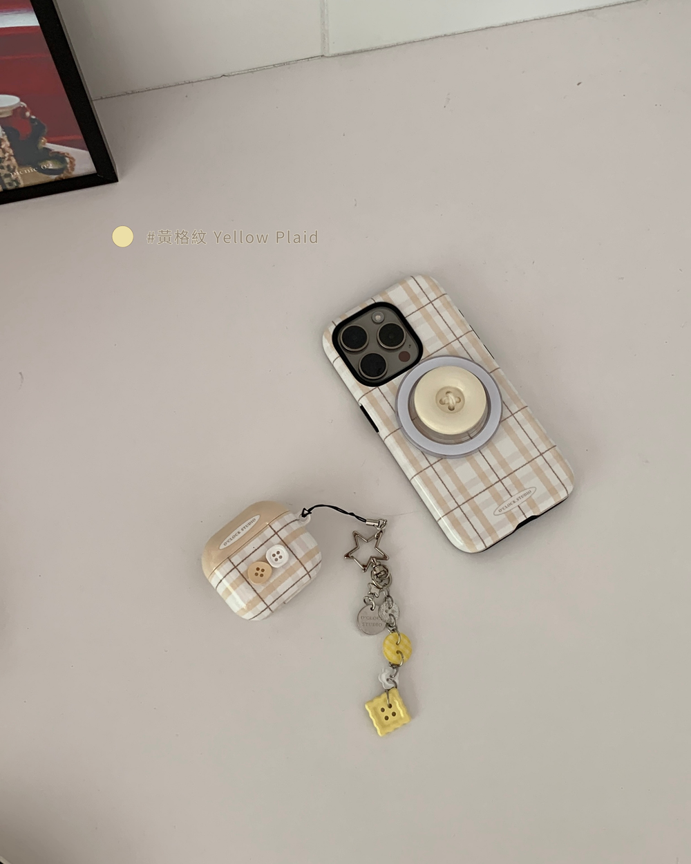 耐看經典格紋配上鈕扣細節讓你的殼與眾不同🫶