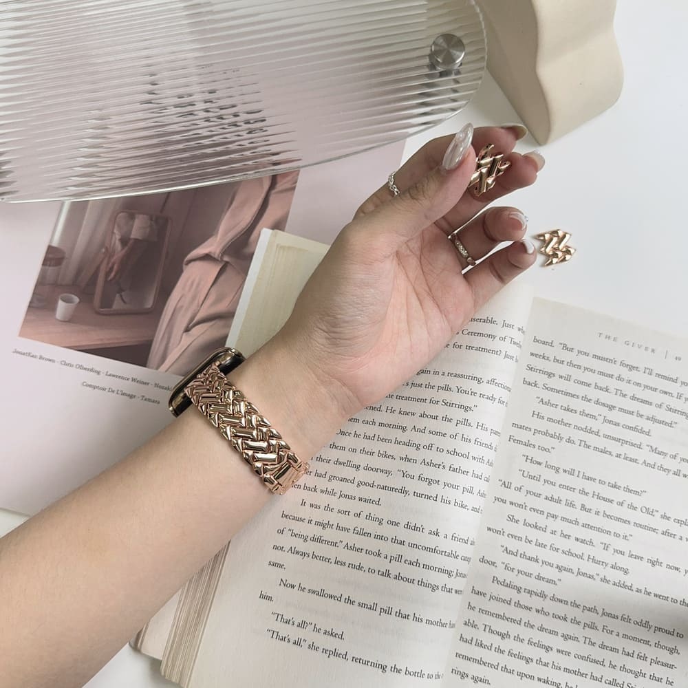 陽光照耀下波光粼粼的金屬色澤,使錶帶有如片片鱗片拼接而成般✨